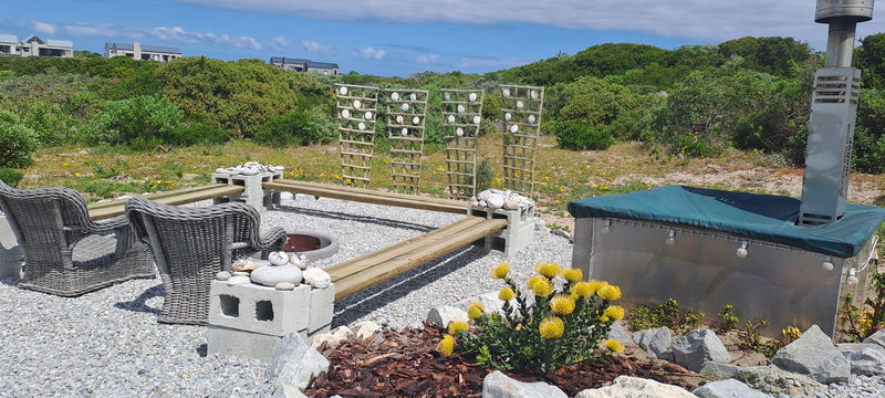 Luxury Self Catering Beach House, sleeping up to 8 guests, with 4 bedrooms, 3.5 bathrooms and two living rooms each with its own fireplace. The courtyard has a outdoor patio with built in braai. The fynbos garden has a fire pit with wood fired hot tub. Couples with only 2 persons can rent the Guest Wing for the lowest rates and still have exclusive access to the main house living areas, firepit, braai etc as two groups will not be accommodated simultaneously. Groups of 4 to 6 people can rent the main 3 bedroom house exclusively. Or both the Main House and Guest Wing can be rented for groups of up to 8 persons.